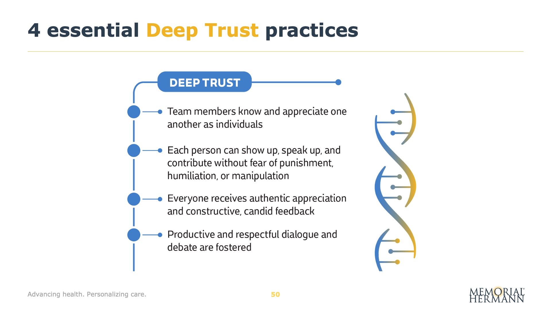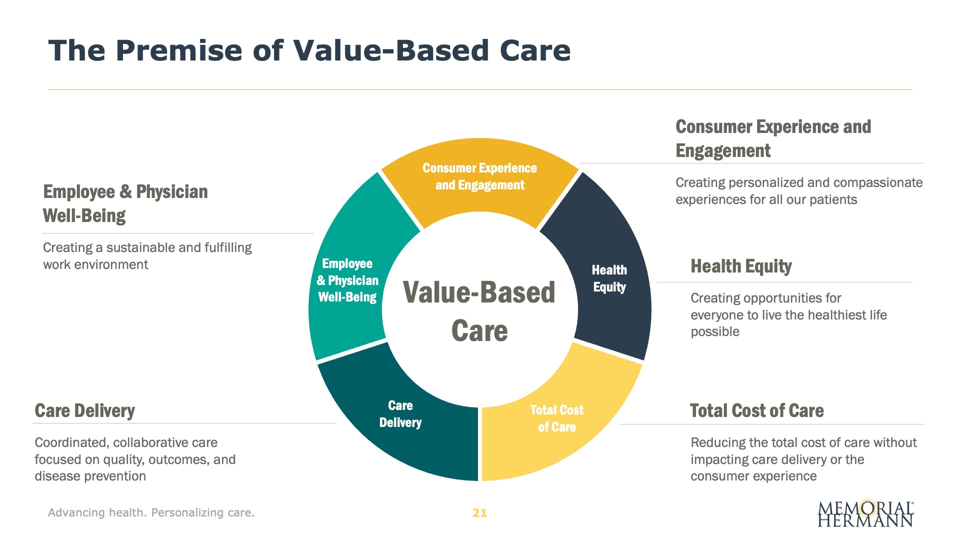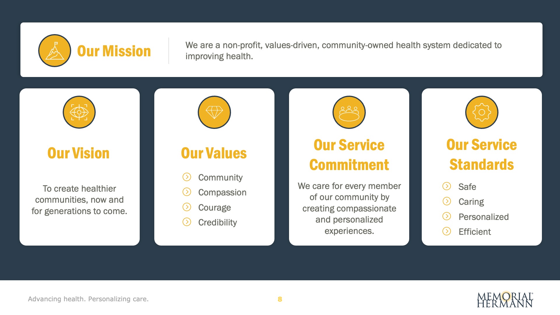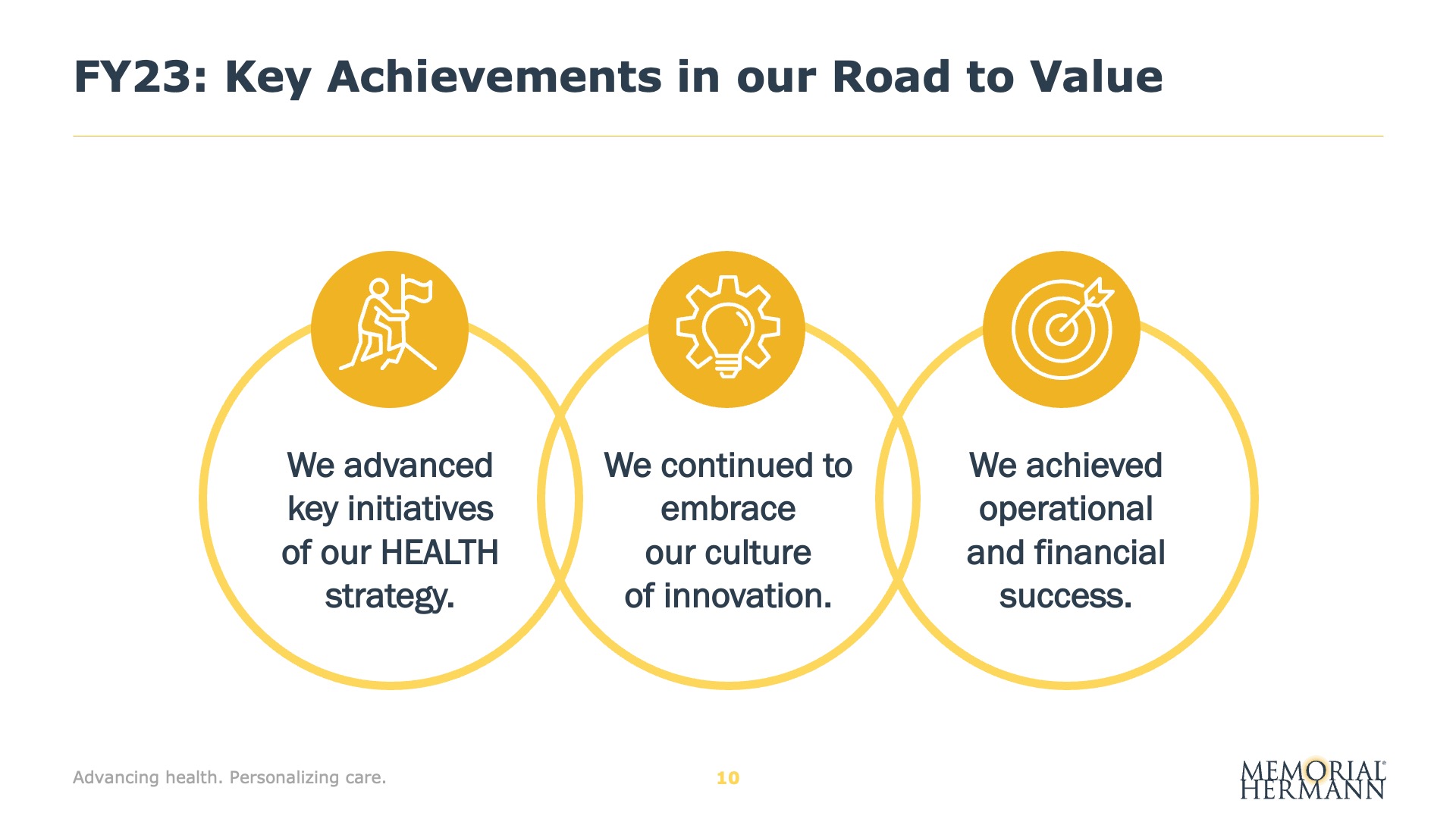 Designed for Memorial Hermann Health System, this presentation features selected slides from a senior leadership meeting focused on aligning strategy, culture, and execution across the organization. Built to support live, in-room facilitation, the deck translates complex system performance, financial data, and long-term strategic priorities into a cohesive visual narrative—reinforcing Memorial Hermann’s Road to Value strategy and the leadership behaviors required to drive trust, accountability, and sustainable impact.