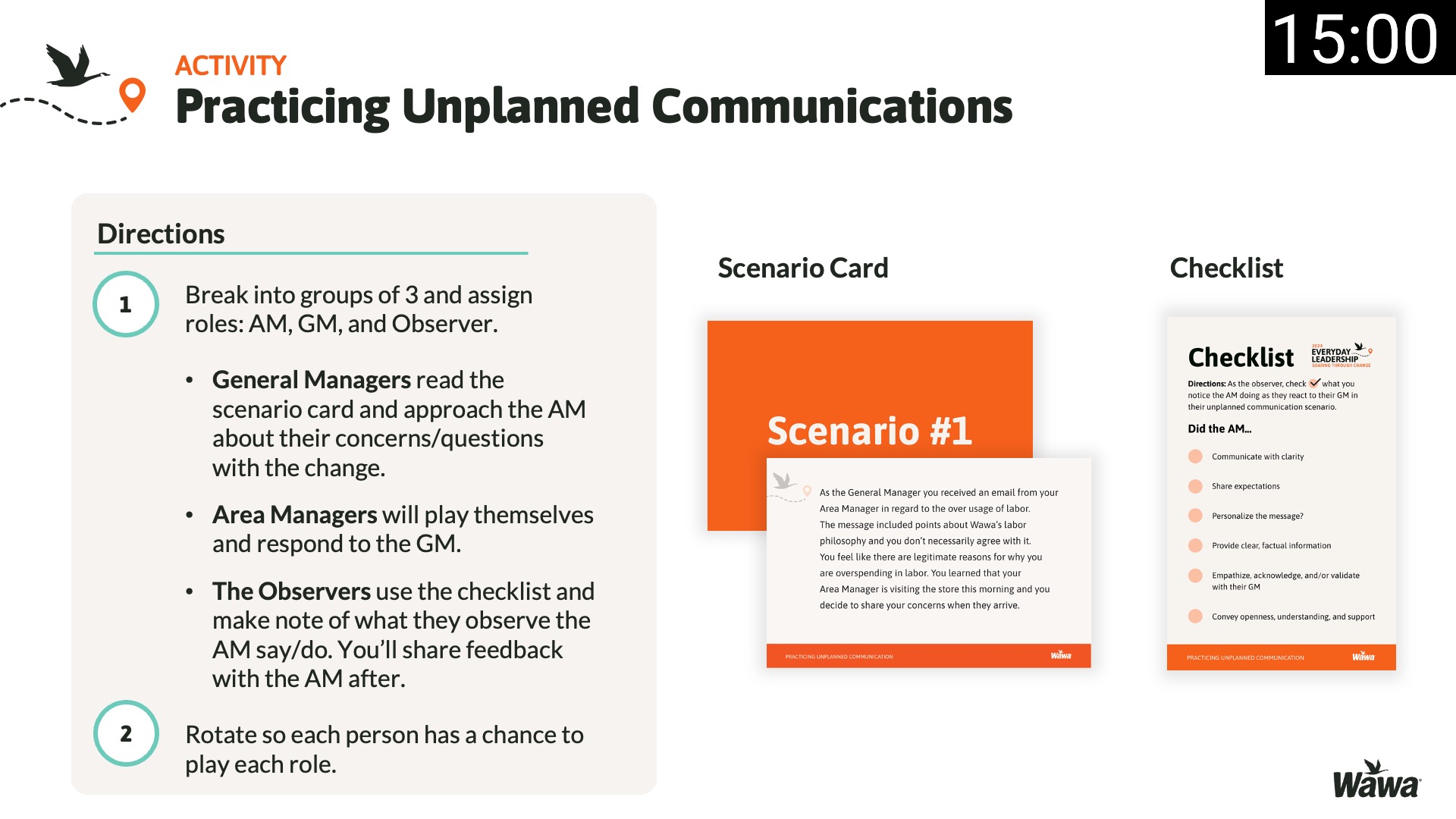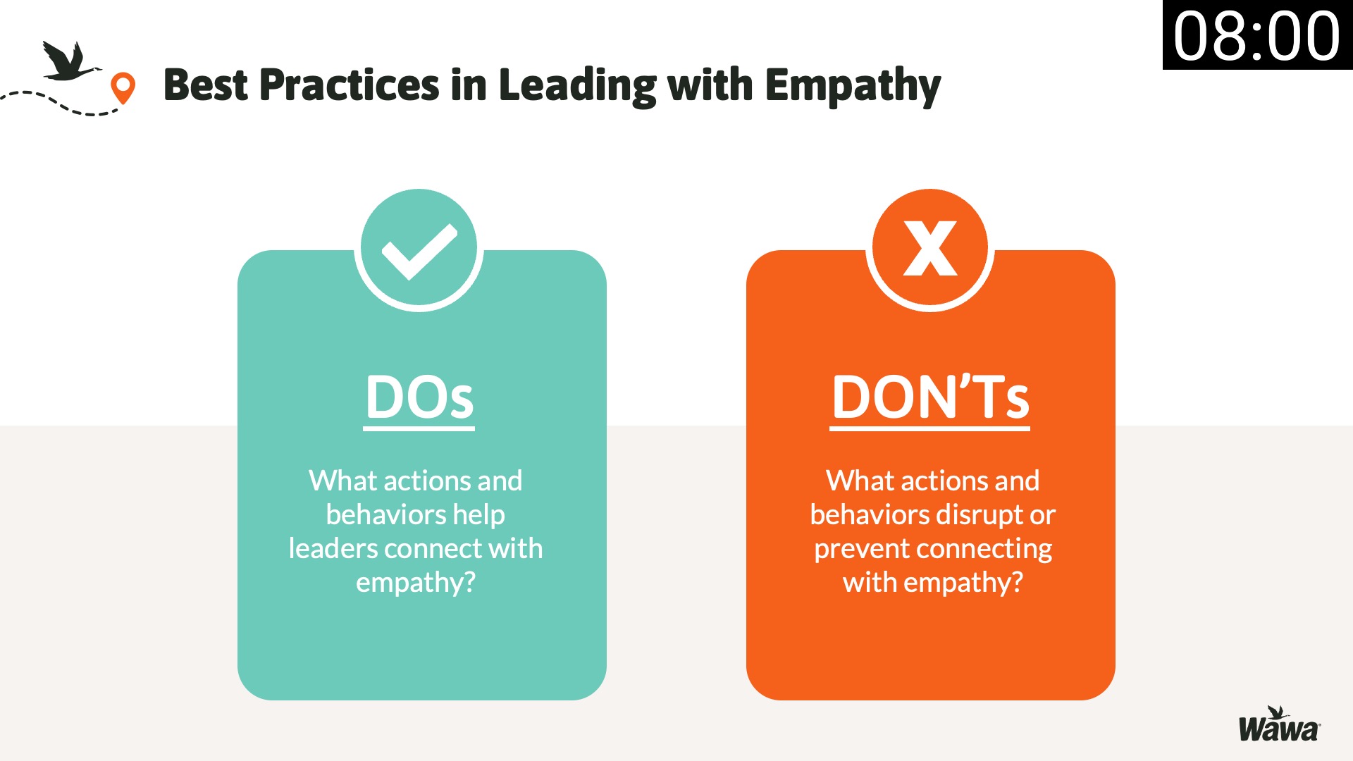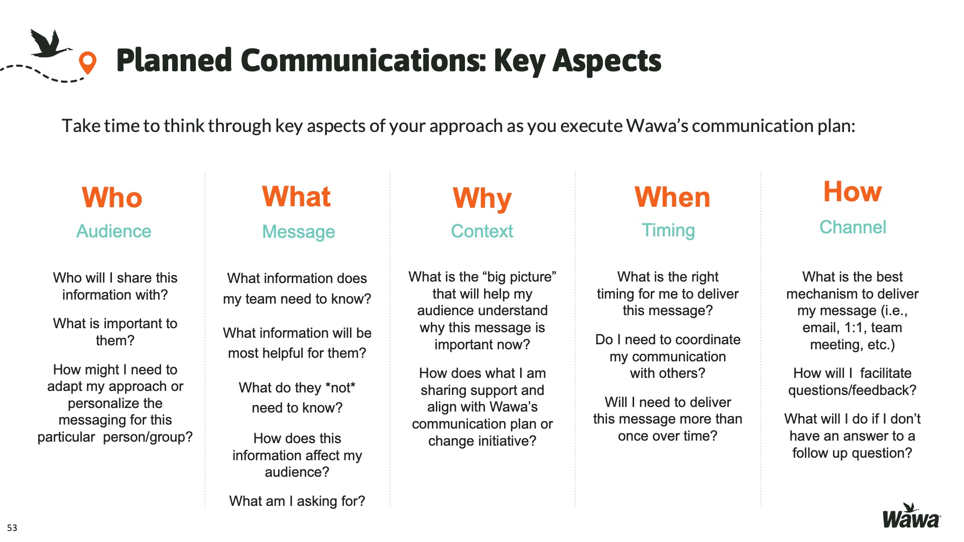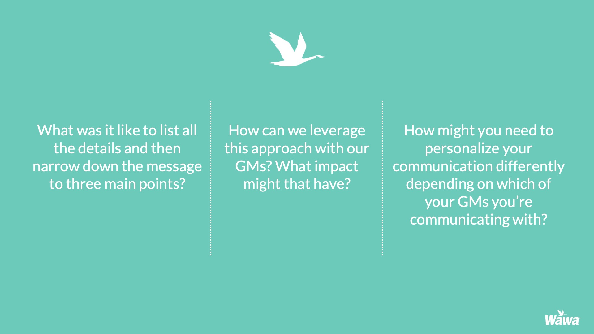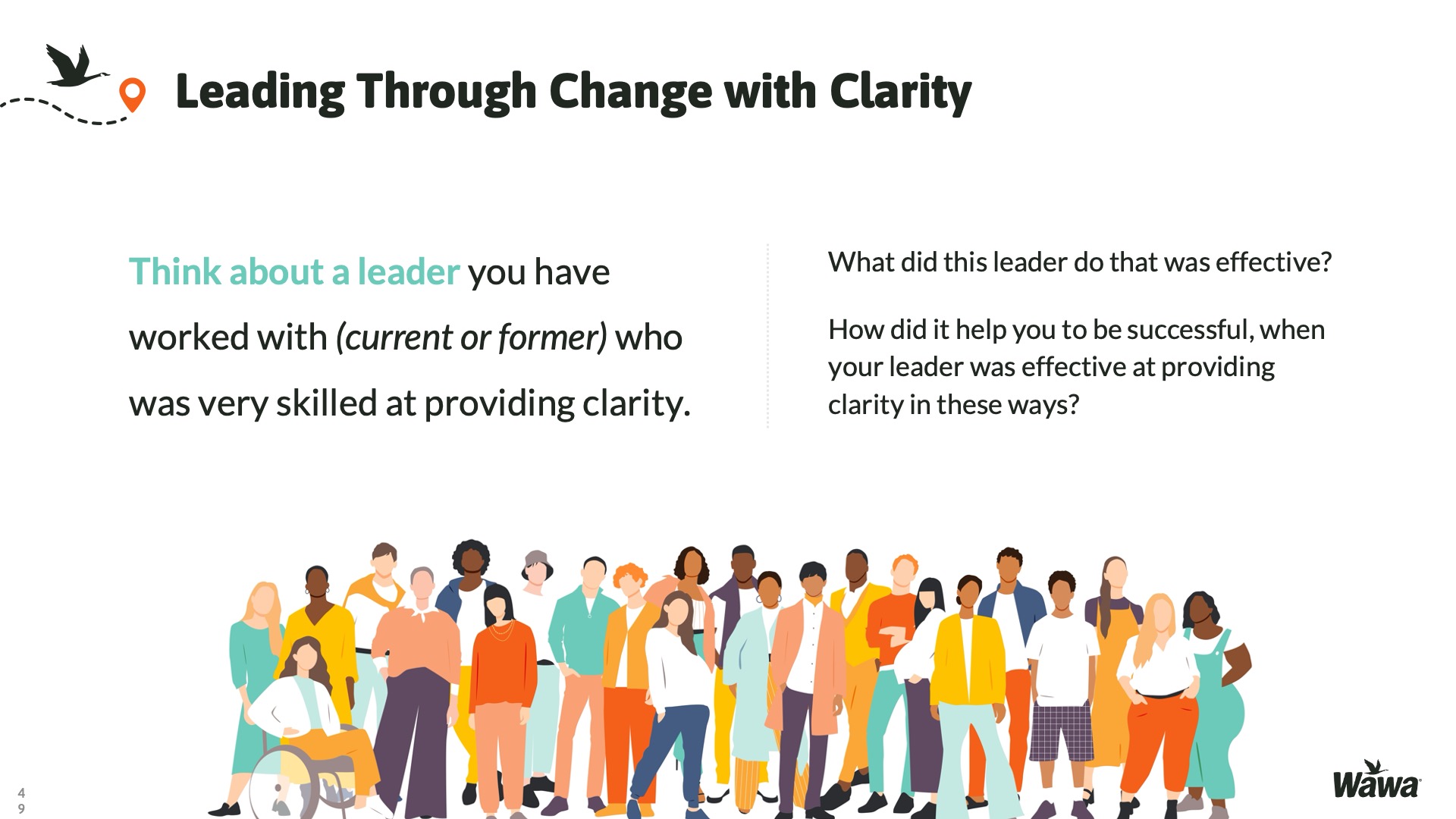 Designed for Wawa, this work represents selected slides from a 75-slide, facilitator-led Operations Alignment workshop used in live leadership training. The deck was built to help leaders navigate organizational change by understanding the transition process, anticipating associate impact, and applying consistent leadership behaviors that reinforce clarity, empathy, accountability, and standardization across regions.